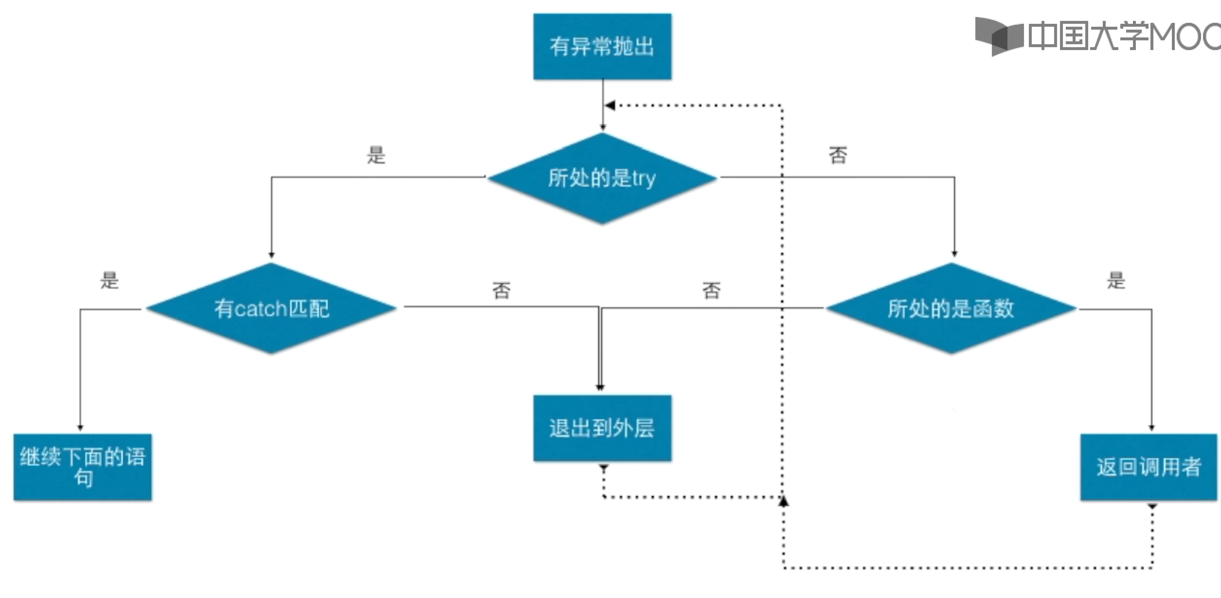 f产生异常,所处不是try,所处是函数g,返回调用者g